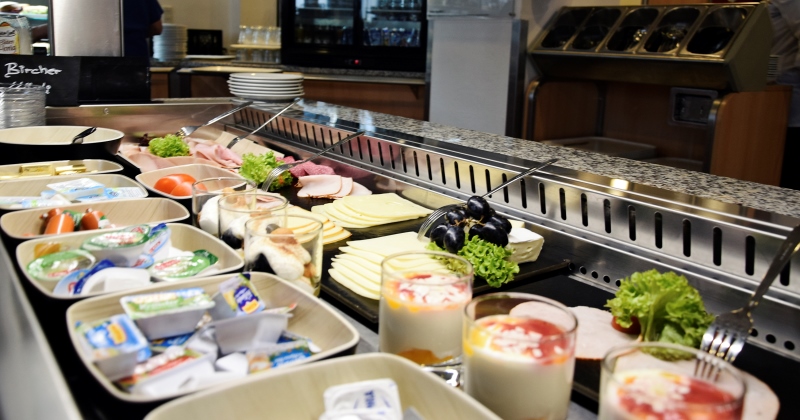 - Ein reichhaltiges Frühstücksbuffet, belegte Brötchen u. Baguettes, Wraps