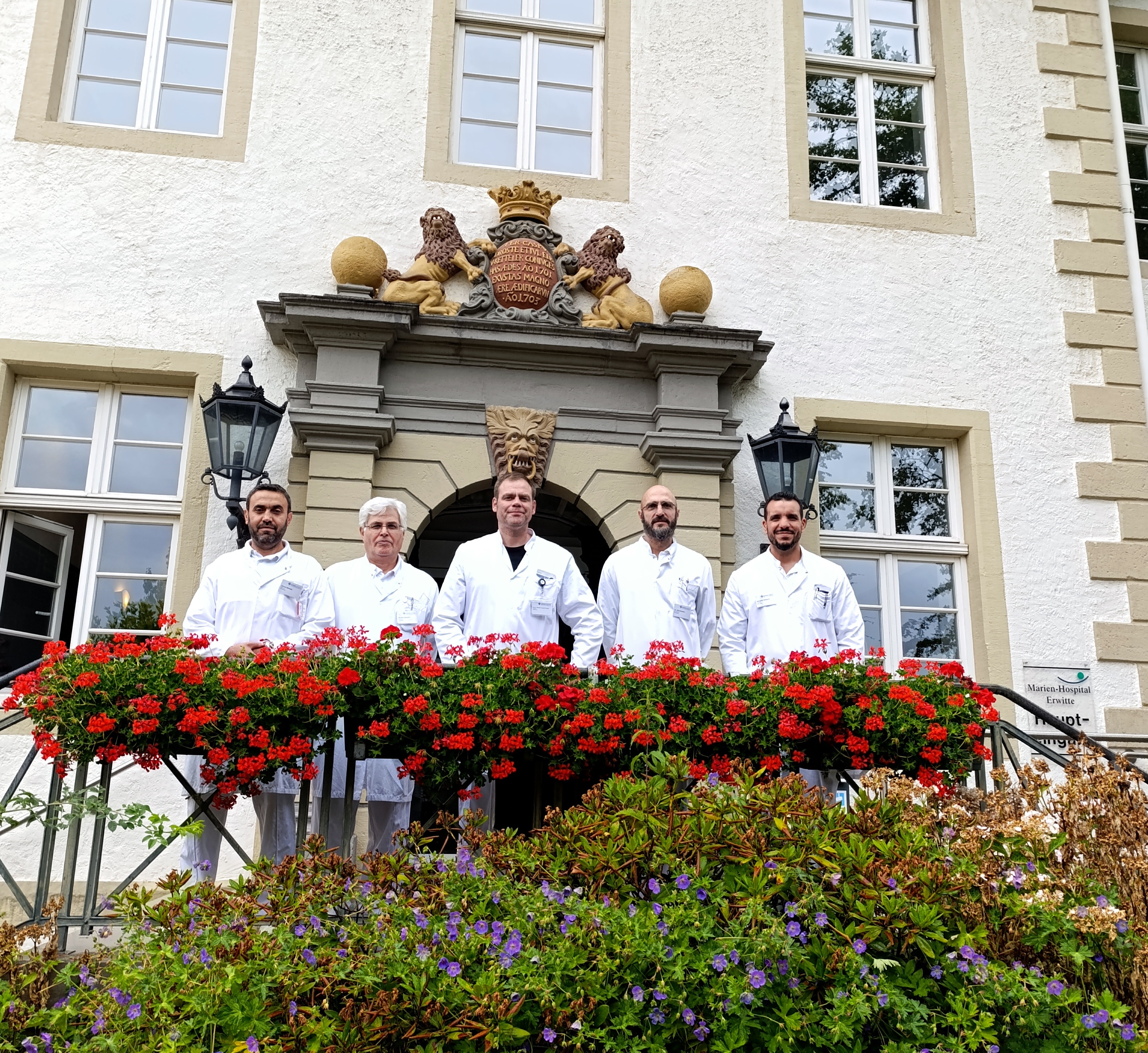 BU: (v.l.n.r.) Zertifizierte (Senior-)-Hauptoperateure des Endoprothetikzentrums der Maximalversorgung des Klinikums Lippstadt: Ahmed Alshrafy (Oberarzt), Morteza Sarzaeim (Oberarzt), Prof. Dr. Christian-Dominik Peterlein (Chefarzt), Dr. Dirk Baumann (Oberarzt), Mohamed Benbashir (Funktionsoberarzt).