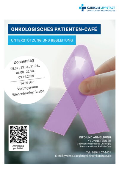Das Klinikum Lippstadt lädt interessierte Krebspatienten und deren Angehörige zum onkologischen Patientencafé ein.