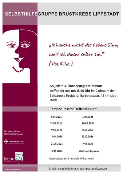 Die Treffen der Selbsthilfegruppe Brustkrebs Lippstadt finden an jedem 3. Donnerstag im Monat statt.