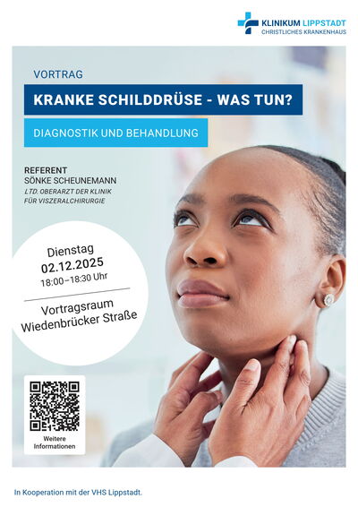 Bei jedem dritten Erwachsenen kommt es im Laufe des Lebens zu einer krankhaften Veränderung der Schilddrüse. Erkrankungen der Schilddrüse gehören damit zu den häufigsten Stoffwechselerkrankungen. Am Dienstag, den 2 Dezember, um 18 Uhr, informiert Sönke Scheunemann, Leitender Oberarzt der Klinik für Allgemein- und Viszeralchirurgie im Klinikum Lippstadt, über die Diagnose und Behandlungsmöglichkeiten bei kranker Schilddrüse.